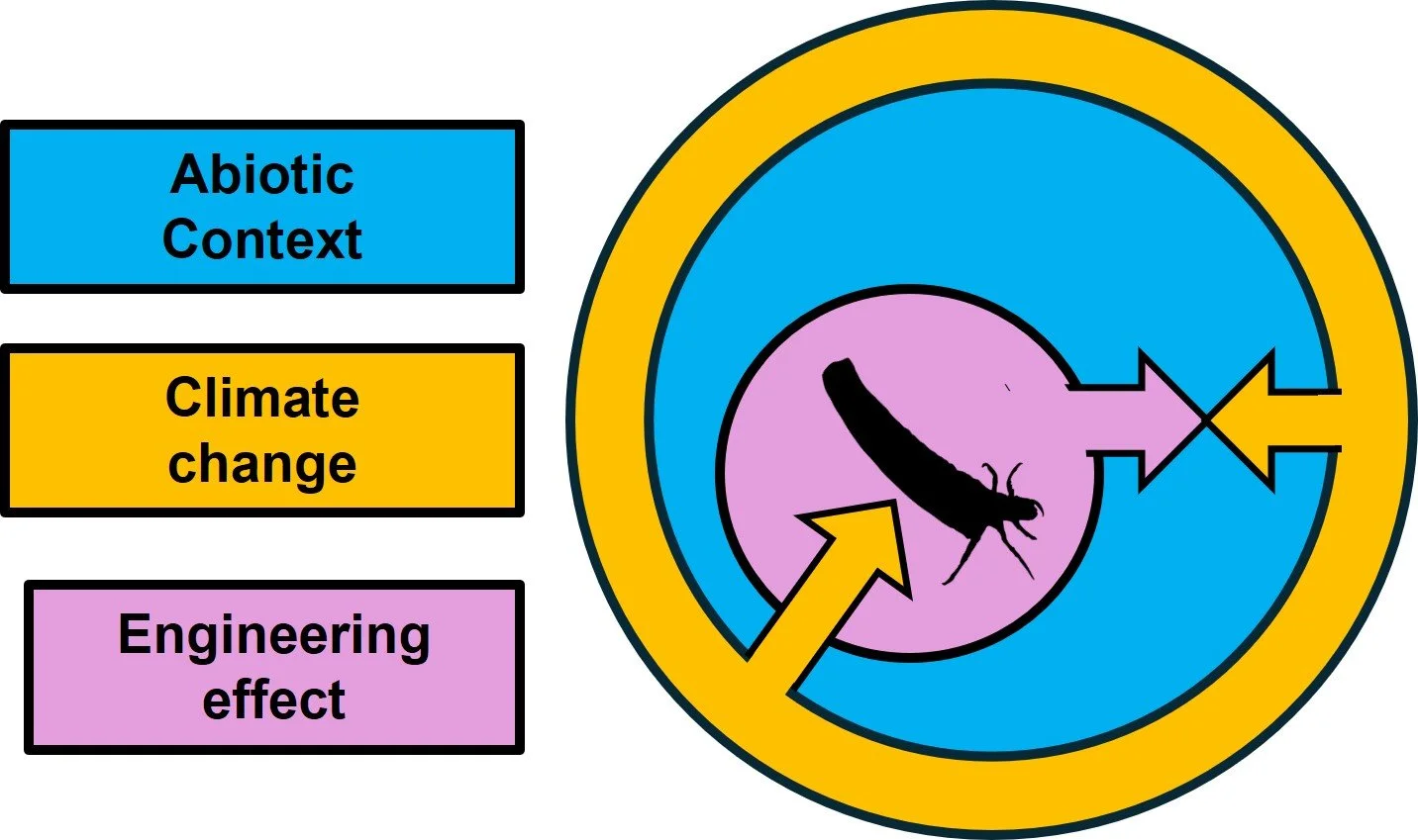 Engineers in a changing world: Work in my lab is exploring how anthropogenic-driven disturbances such as climate warming intersect with and contextualize the roles of ecosystem engineering on community and ecosystem processes. We are interested in understanding if and how engineering activities confer community and ecosystem resilience under global change scenarios. This initiative will also measure how global stressors alter engineering capacity and therefore the impacts of engineers on community and ecosystem processes into the future. Untangling how global change alters the capacity for organisms to affect physical environments may provide deeper understanding into the roles that animals will play in a changing planet.